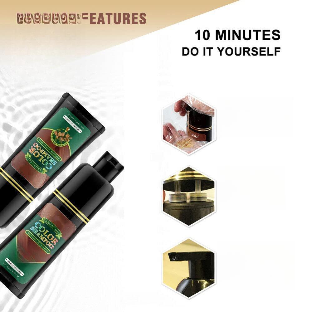 Argan Oil Hair Color Shampoo - Dark Brown, 500 ML: Instant Fast Acting Long Lasting Signature Hair Dye, Ammonia-Free, Nourishing, Shining, Professional, Easy to Use, Salon Quality