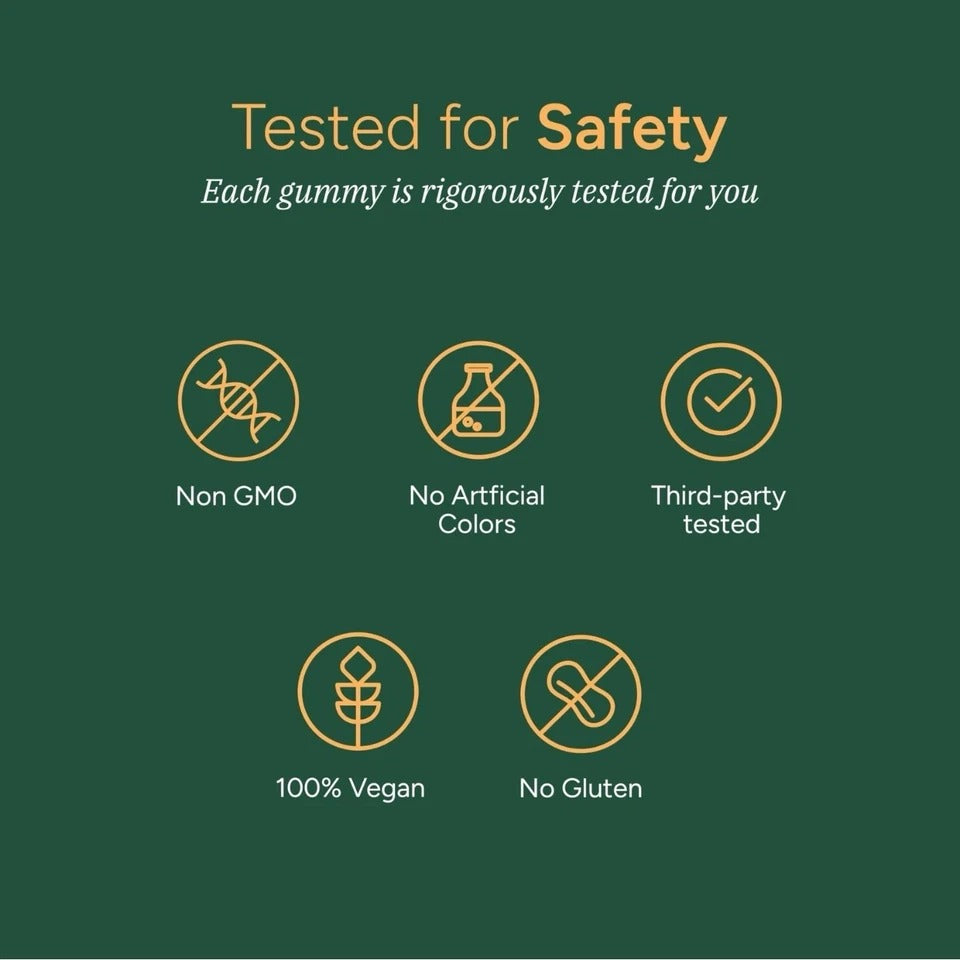 Each serving (2 gummies) is designed to support cognitive function, reduce fatigue, and boost immunity while promoting overall vitality. Made with clean, paraben-free, sugar-free, and toxin-free ingredients, these gummies are suitable for both men and women. The soft, chewy texture makes daily supplementation easy and enjoyable.