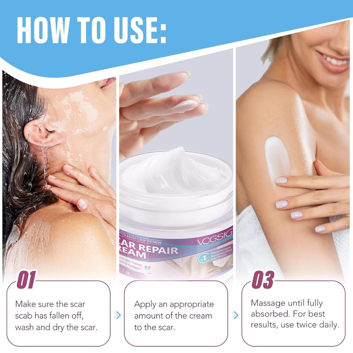 Scar Repair Cream - Rapid Repair of New & Old Scars, Burns - All-Natural Treatment with Vitamin E, Alanine, Collagen - 1.7 oz